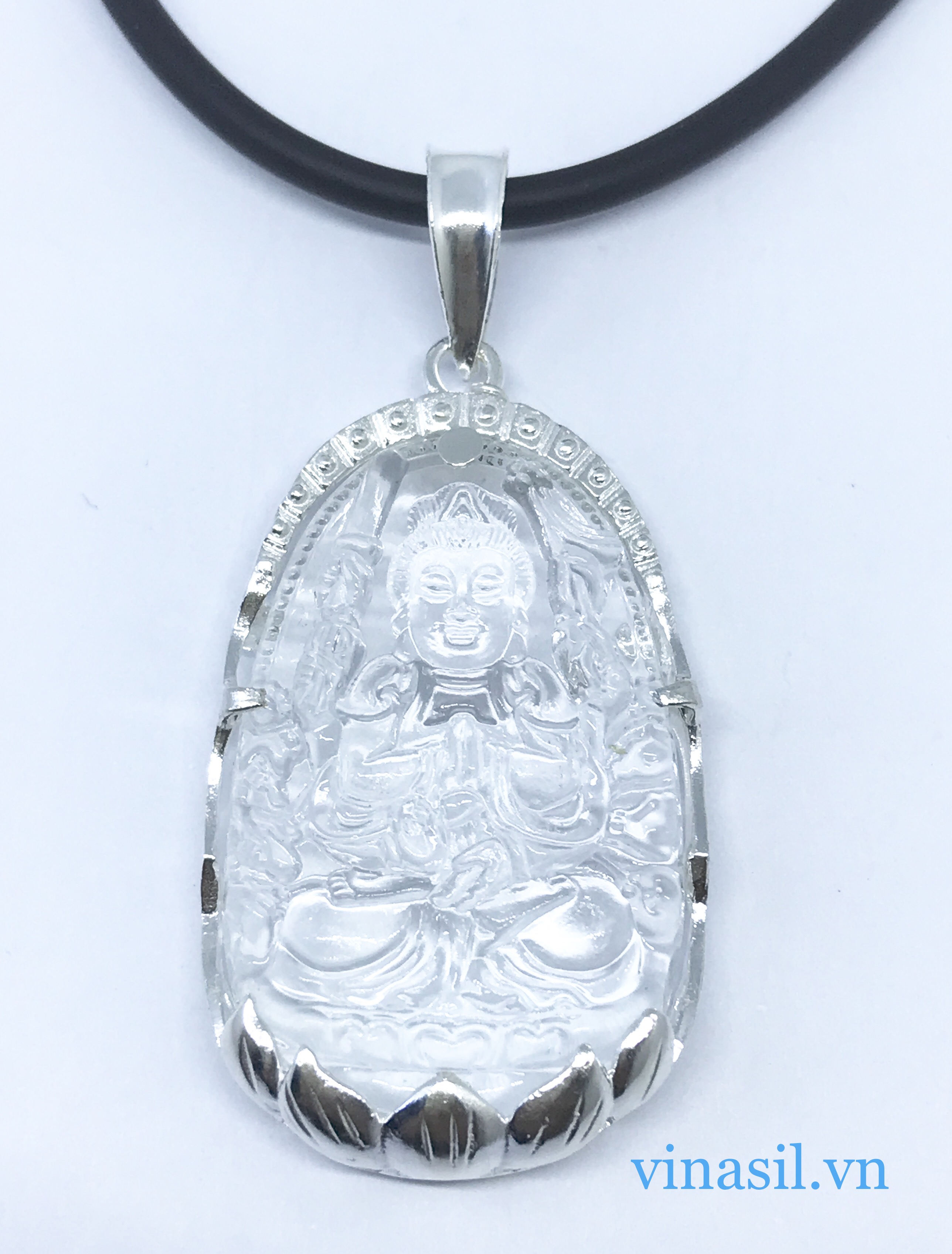 - Mặt phật bà quan âm bọc bạc.- Kích thước: cao 4,5 rộng 4cm